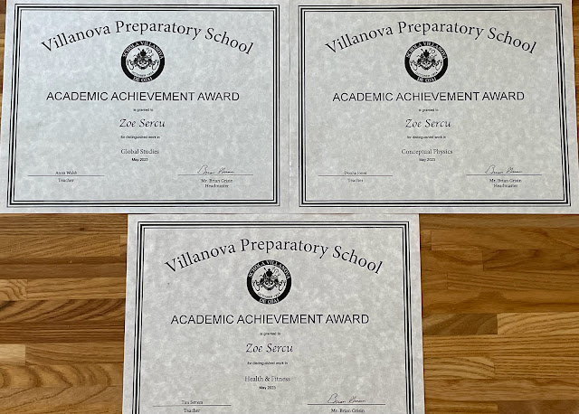 Eerder deze week was er bij Zoe op school award uitreiking en werden per vak de 'beste' studenten (zowel van resultaten als gedrag in de klas) in "the spotlight" gezet. Wij hadden van Zoe's lerares Engels een email gekregen een paar dagen geleden om ons te laten weten dat Zoe voor minstens 1 award geselecteerd was en als we wilden mochten we naar de ceremonie gaan, dus ik daar naartoe. Uiteindelijk heeft ze behalve voor 1 vak voor alle andere vakken een award gekregen. Ze heeft ook zo hard gewerkt dit jaar dat dit dubbel en dik verdiend is!